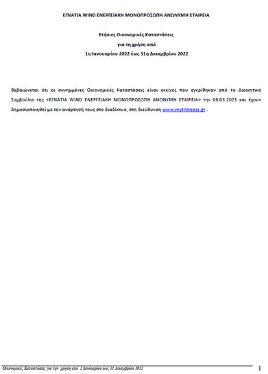 Για να κατεβάσετε τις Χρηματοοικονομικές Καταστάσεις του 2022 πατήστε εδώ