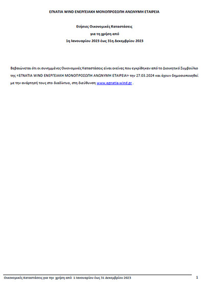 Για να κατεβάσετε τις Χρηματοοικονομικές Καταστάσεις του 2023 πατήστε εδώ